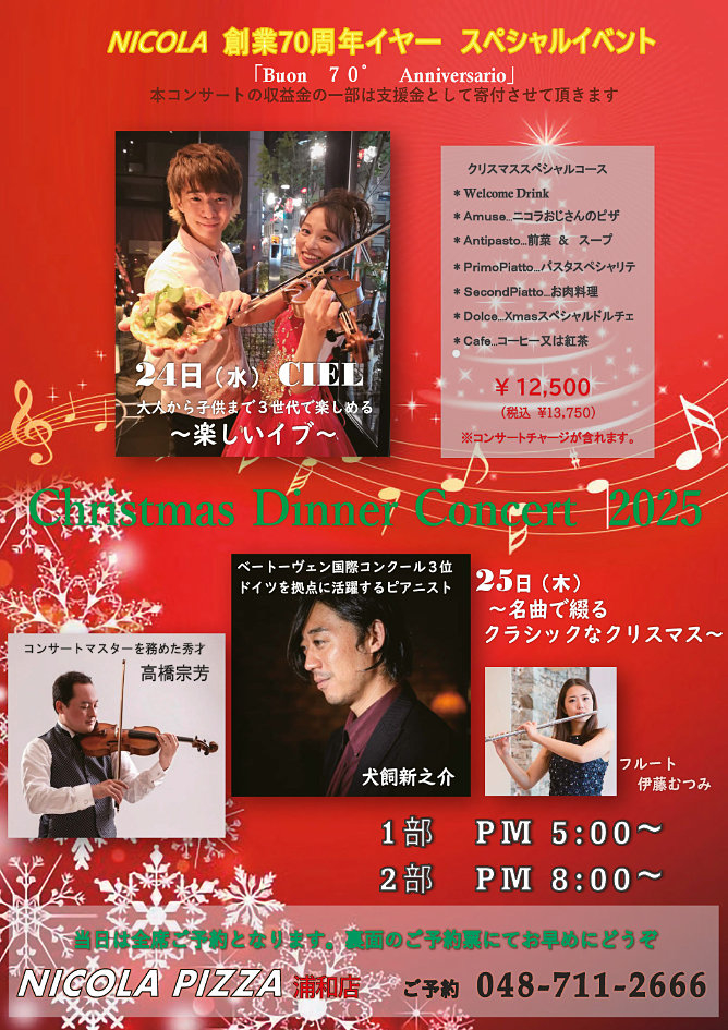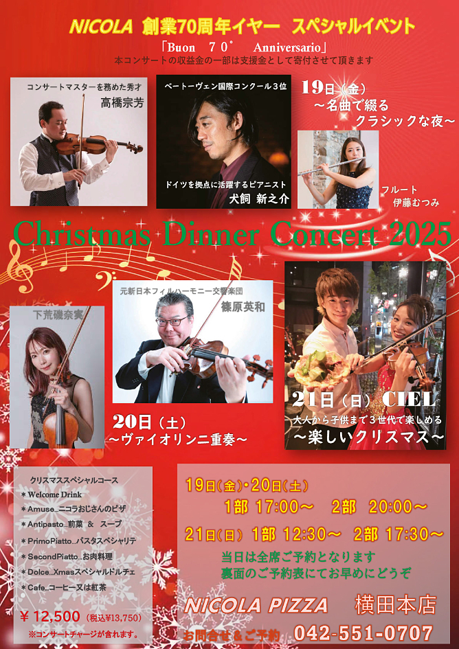 クリスマスディナーコンサートのご予約がスタートいたしました!